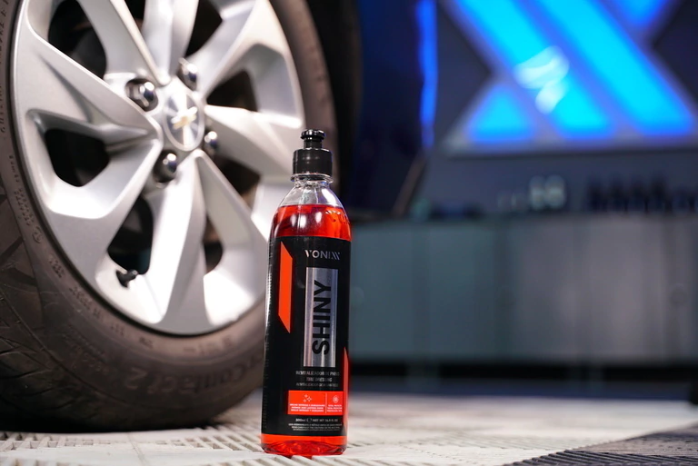 SHINY es un producto desarrollado exclusivamente para uso en neumáticos que renueva, protege y da a los neumáticos un brillo intenso y duradero. El producto no se desprende cuando entra en contacto con el agua y puede durar hasta 60 días, rinde de 15 a 20 aplicaciones en autos pequeños y mantiene la apariencia de brillo mojado de la llanta.